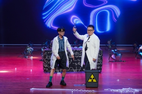 压轴登场的《高能科学秀》引爆全场。表演以主线故事串联物理化学“黑科技”,从化学爆炸到AI互动,打造“可移动科学课堂”。在《神秘气息》环节,实验员操控烟雾光影揭示气体反应奥秘,配合3D科幻背景与动态舞美,观众仿佛置身奇幻实验室,在10余个知识点的趣味传递中感受科学魅力。