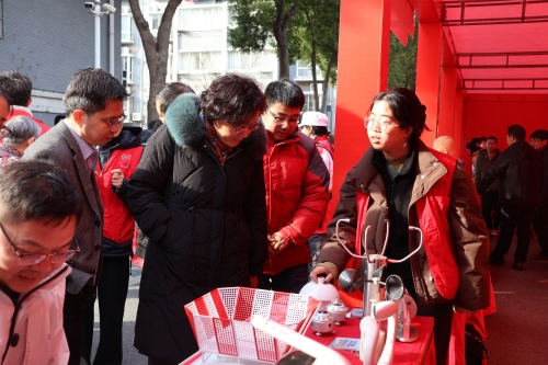 (科技志愿者发放科普材料)